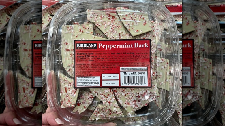 In late October 2024, longtime fans rejoiced when Costco's seasonal peppermint bark began returning to store shelves. Popular Instagram fan account @costcohotfinds was among the first to cover its return, raving "It is the BEST! ... I was surprised but happy to see it back so early." The comments section of the post is filled with similarly stoked fans. One Reddit fan calls the Kirkland Peppermint Bark "absolutely fire," adding that it's "Way better than the individually wrapped Ghirardelli peppermint bark."
