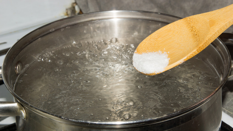 When salting pasta water, aim for a level that tastes like the sea. This may seem excessive, but much of the salt will stay in the water, leaving just enough to enhance the flavor of the pasta. Add salt once the water reaches a boil, then taste it to ensure it's seasoned properly before adding the pasta.