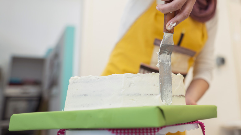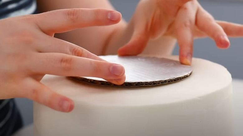 Cake boards are typically made from thick cardboard or acrylic, and come in a variety of sizes and thicknesses to match the size of your cakes. You can even make a DIY version by cutting a strong piece of cardboard into an appropriately-sized shape for your cake, adding a coating of glue, and covering it in aluminum foil. Whether you're working on a single-layer cake or something with two or more tiers, boards will prevent shifting or collapse, and help to support each layer during cutting. Simply add a blob of frosting to a board, and place your cake on top before stacking or decorating. You can either match the size of the board exactly to that of the cake, to make it less visible, or choose one that's slightly larger for maximum stability. Any visible edges can always be disguised with buttercream, fondant, or ribbon. Larger, thicker cake boards also make a great temporary surface for decorating your cake on, before transferring to a plate or cake stand.