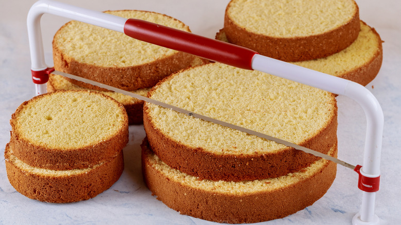 Levelers are especially useful if you're baking multiple layers for a tall cake, and need all of them to be equal in height. Or, if you're working with delicate sponges that can crumble easily, the thin wire cutter will give you more precision than a knife. You can use this tool to remove the domed tops from each cake layer, or split one cake into two halves. Some levelers even have multiple blades, so you can slice a cake into three or more layers with a single cut.