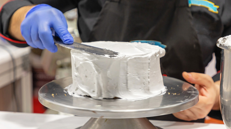 Smoothing frosting evenly all the way around a cake can be a fiddly task, but using a turntable is game-changing. It'll save you time (and probably frustration!), allowing you to spin the cake swiftly with one hand, whilst smoothing frosting, creating patterns, or adding details with the other.