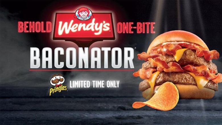If you're a Baconator fan, there may be times when you're craving the flavor of your favorite burger. However, for whatever reason, it may be an inopportune time to actually eat one. Maybe you're stuck on an airplane or driving a car and want to avoid dropping ketchup in your lap. For times like those, there was once a product for all you Baconator lovers out there: Baconator Pringles. This mashup product infused the rich flavor of the burger in Pringles' crispy chip packaging, and the result sounds ... interesting.