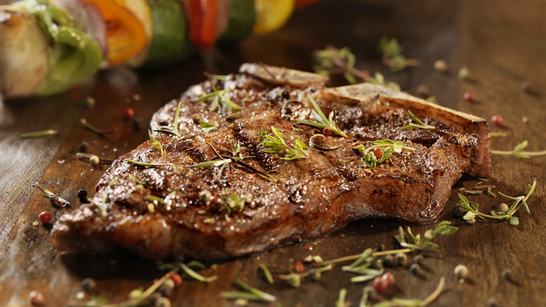A rather large slab to begin with, the porterhouse (a great alternative to the T-bone) was apparently Babe Ruth's go-to cut of meat. In fact, "The Life That Ruth Built" went on to document another one of the ballplayer's meals. While enjoying a night on the town in New York City, the Bambino doubled up on the porterhouses for dinner, pairing his dual meats with two orders of cottage potatoes, two entire heads of lettuce (smothered in creamy Roquefort dressing), and two slices of apple pie à la mode. If you thought his breakfast was large, that was nothing compared to his dinner order.