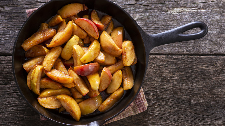 They may be your favorite side dish to order at Cracker Barrel, but fried apples originate in the South, where they've been a staple since the 1800s. Apples grew plentiful in Appalachia, particularly in poor mountain areas, where they were — and still are — an important part of the cuisine. The dish, which involves cooking apples in butter, sugar, and cinnamon until they're soft, has long been enjoyed by those in the South, but today, it's popular all over the country. Everyone has their favorite way to enjoy the sweet, buttery dish, whether it be alongside bacon at breakfast or over ice cream for dessert. However you like them, there's one secret that's absolutely key for the very best fried apples, and it has to do with your cutting technique.
