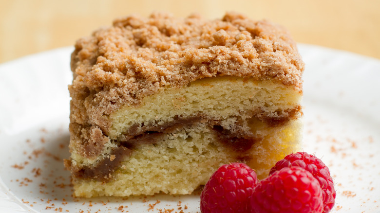 A good Sunday crumb cake is unmatched. This type of cake combines several delicious elements into every bite; you have a cakey, vanilla-forward base interspersed with ribbons of cinnamon sugar, all topped with that delectable streusel accent. It's so good that we wonder why Crumbl hasn't jumped on this cookie idea yet. Its peach cobbler cookie, for example, already has a streusel topping.