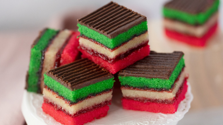 Rainbow cookies are yet another niche dessert that folks who grew up outside of Italian-American households may not understand. But when you combine layers of colored almond cake with raspberry jam and melted chocolate, you have a cookie that's fit for a king. And it's one that Crumbl could adapt to its menu rather easily.