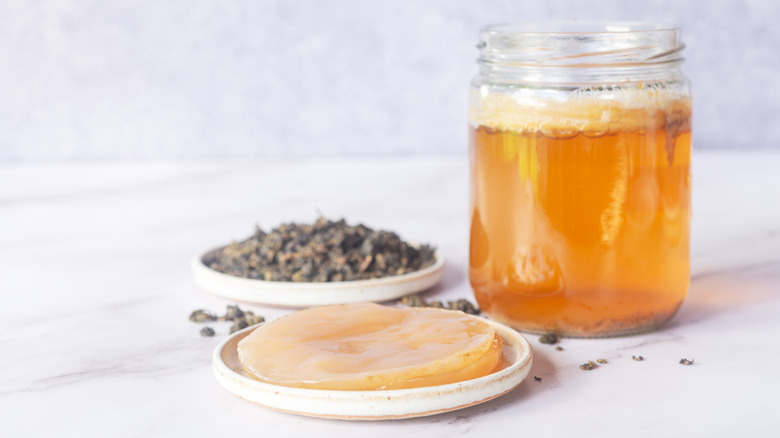 Fermentation is the process responsible for creating that sweet-sour-tangy flavor and fizzy mouthfeel signature to kombucha. The SCOBY interacts with the sugars in the sweetened brewed tea to form acetic and gluconic acid, natural probiotics, antioxidants, and beneficial enzymes. To achieve the most dimensional, balanced, and overall delicious flavor, successful homemade kombucha largely comes down to the fermentation duration."If you're new to making kombucha," Christensen explains, "I recommend letting it ferment undisturbed for five days and then tasting it daily until you like the flavor (you can just pour a small amount into a glass right from the fermentation container)."