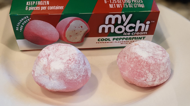 It might seem like apples and oranges to compare these bite-sized little treats with a standard scoop, since they are halfway to something more like a frozen novelty. Still, we learned in our pumpkin ice creams roundup that MyMochi can go the distance, and these finger-foods land closer to a scoop of ice cream than a popsicle. So, the real question is whether the delightful gumminess of their tapioca shell can hang with a flavor associated with hard candy? Well, I am just so happy to report that, yes, it can.
