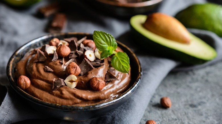 Although avocados have a fairly mild taste, they are not completely tasteless, and their buttery, nutty, and earthy flavor can affect the taste of certain desserts. It's for that reason that avocados work best when paired with strong flavors such as chocolate, citrus, and vanilla — luckily, three popular and common dessert flavors. Avocados work particularly well as a replacement for butter, eggs, shortening, or vegetable oil in brownies, cakes, cookies, cupcakes, and ice cream. They're also good in desserts such as mousse, as their naturally thick consistency offers a rich and velvety texture and delectable mouthfeel.