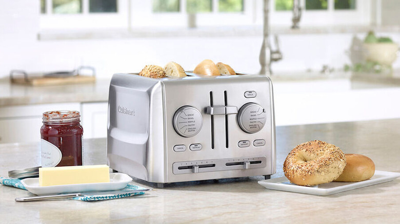Whether you've recently hosted your extended family for the holiday season or your household is regularly bustling with activity every morning, breakfast can be a challenging affair. At times, it may seem like everyone has a different preference for juice, milk, fruit, eggs, and toast. Not to mention, you might have multiple people clamoring for breakfast all at once. That's where 4-slice toasters come into the picture. They can lift some of the burden off your shoulders by allowing you to toast a bagel and bread at the same time. On some models, you can even choose different toasting levels for each set. If you need an extra nudge to invest in this appliance, here it is: You can use it for more than just making toast. Heating breakfast pastries, pizza, and even asparagus are some of the absolute best uses for your toaster.