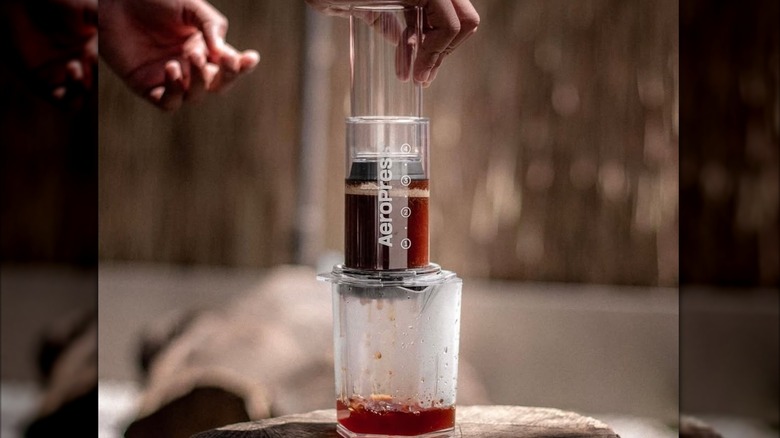 If you've never seen an Aeropress, it's a simple, manual coffeemaker with a press plunge (much like a French press). Coffee brewed in an Aeropress is mostly known for being clean-tasting. It doesn't have quite the same flavor as a French press coffee, so pick which one you prefer: smooth and rich without being bitter (Aeropress) or stronger and full-bodied (French press).