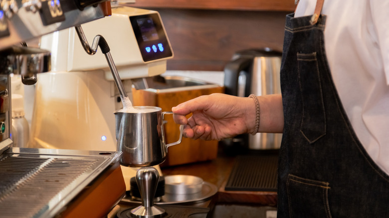 As a barista, I will always stick up for the usefulness of a good milk pitcher. You shouldn't just be frothing your milk in any ol' vessel. A milk pitcher will help you measure your milk properly — and a stainless steel milk pitcher will also allow you to keep the temperature of your milk consistent. Additionally, the size and mouth of a standard milk pitcher will help you achieve a better foam. If you were to froth milk in an open-mouth bowl, for example, you'd be unlikely to make any foam. Milk pitchers are literally built to get you the perfect angle for both steaming and frothing.