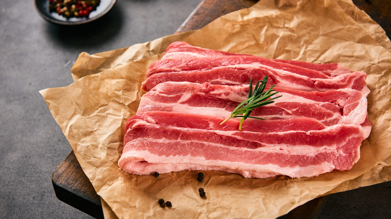 It is becoming increasingly difficult to find a fattier cut of pork at the store, but whether that is a good thing is up for debate. For decades, people were taught that fat equals bad, and that eating too much of it was detrimental to heart health. To compete in a market that demands lean meat, pork breeders adapted and increasingly bred pigs that were leaner and leaner. Aside from the fact that the fat isn't as significant a nutritional problem as it was made out to be, fat tastes good. Like the marbling on an expensive piece of steak, fat carries flavor and makes meat more tender and juicy. While pork chops now have nary a streak of fat through them and pork loin is mostly dry and tasteless, some parts of the pig resisted the fat-free diet imposed on them. If you want a fattier cut of pork, the pork belly is the way to go.