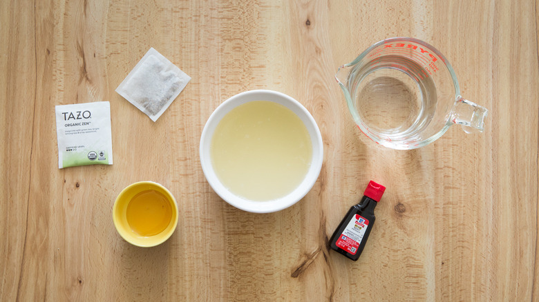 For this recipe, you will first need water and lemonade. Feel free to use any store-bought lemonade you prefer, or make your own lemonade at home with the sweetness level you prefer. We've created this recipe with a Tazo Zen and a Celestial Seasonings Country Peach Passion teabag, but check out the FAQ on alternative teas that would work if those aren't available. You'll also need a little honey. Optional ingredients are peppermint extract to mimic the peppermint syrup that can be pumped into drinks at Starbucks and fresh lemon slices for garnish.