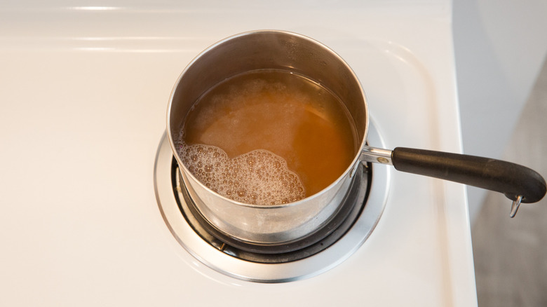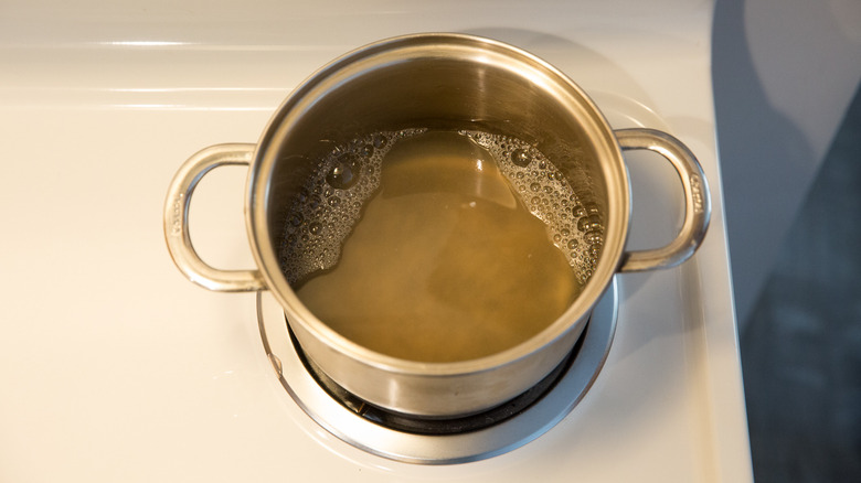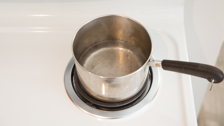 - Bring the water to a boil in a small pot, and then remove it from the heat.