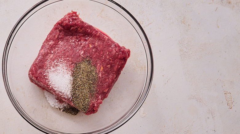 - To make the burgers, combine the bison, salt, and pepper in a bowl. Gently mix to combine.