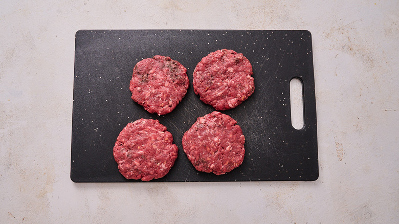 A standard large patty would be just over a quarter pound at about 6 ounces. To do this without having to buy 2 pounds of bison — since it's not exactly cheap — you can combine it with ground beef, instead. This doesn't hurt the bison, and can actually contribute to a juicier burger because beef is higher in fat. Choose a ground beef that is 80 to 85% lean and combine about ½ pound of beef with 1 pound of bison. This way, you still get the great, sweet flavor of bison with the juiciness of the beef (and a lower cost on your grocery bill). Divide the beef and bison mixture into 4 patties — this time, each patty will be around 6 ounces.