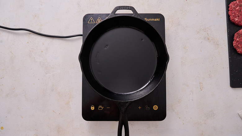 - Heat the grapeseed oil in a cast iron skillet over medium heat.