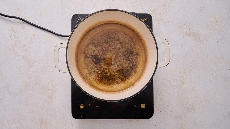 - Heat the oil in a Dutch oven over medium heat until hot. The oil should read 350 F using a candy thermometer.