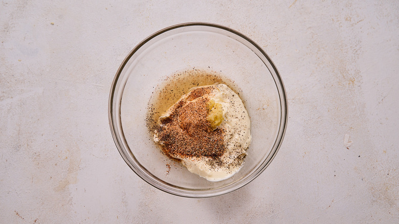 - To make the bourbon mayo, combine the mayonnaise, garlic, bourbon, Cajun seasoning, and lemon juice in a small bowl.