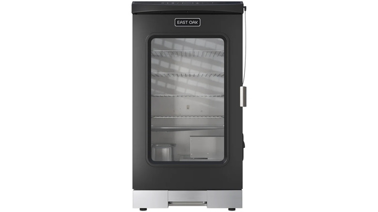 The East Oak Ridgewood smoker is arguably the biggest competitor to the Masterbuilt digital electric smoker. The two look quite similar, with the large viewing windows, side handles for carrying, and various pull-out trays for things like water, wood chips, and the grease trap. Much like the Masterbuilt, the East Oak Ridgewood comes with four racks that are also removable in case you want to smoke something larger, like an entire turkey.