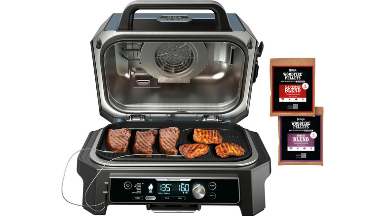 Ninja makes a ton of kitchen appliances, and this nifty Woodfire Pro Connect premium XL smoker is one of them. It's not just built for smoking smaller pieces of meat like chicken breast or steak but also heftier meats like brisket and 10-pound pork shoulder. The Woodfire works by burning wood pellets and using a convection fan to circulate the smoke and heat, effectively air-frying your food while it smokes. With the lid lifted, you can also use it as a grill.