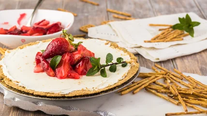 Finally, you can hack a pretzel pie crust without crushing the pretzels or par-baking them first. This trick will need you to use a little imagination. Make a no-bake dessert, like icebox cheesecake, or a custard, and simply top the dish with whole pretzels. Or, line the edge of the dessert with pretzels. You get all the crispy texture and added flavor with little work involved.
