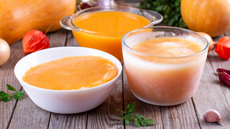 The absolute best way to thaw and reheat frozen soup is simple. To keep things safe, you should thaw your soup in the fridge overnight and then reheat it. Thawing it in the fridge is a safe option because it ensures that even as the soup defrosts, it will still remain at a safe temperature, never warming up higher than the temperature inside your fridge, which should be at 40F or below. If you're short on time, you can place your frozen soup in the microwave to speed things up. It's imperative that you bring your thawed soups to a boil for at least three minutes to kill any bacteria that might be present. Keep in mind that you should only reheat thawed frozen soup once to maintain the quality of the soup.