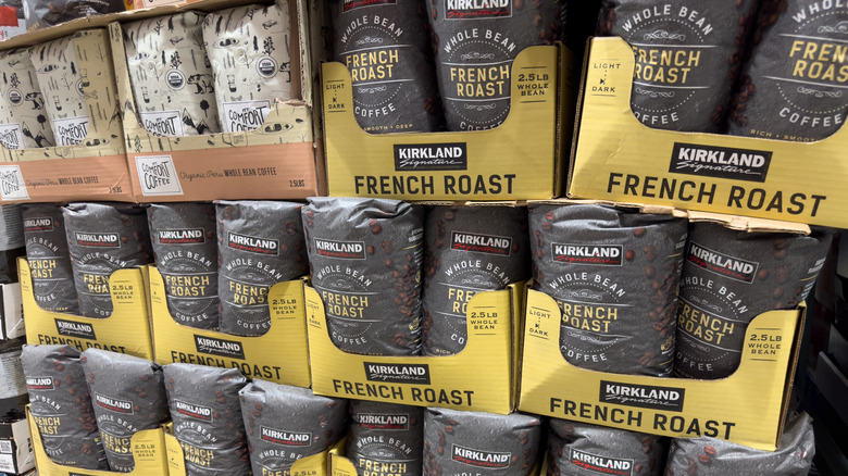 Sleuthful coffee lovers enjoy uncovering who makes Costco's Kirkland Signature coffee. Fortunately, Costco is fairly forthcoming about its manufacturing partners. It's no secret that Starbucks once supplied Kirkland's whole-bean house blend. The packaging proudly advertised the brand logo, along with the words, "Custom roasted by Starbucks Coffee Company." The Seattle brand also supplied Kirkland's whole-bean espresso and decaf blends. However, for one reason or another, the logo disappeared from all three around the beginning of 2024.