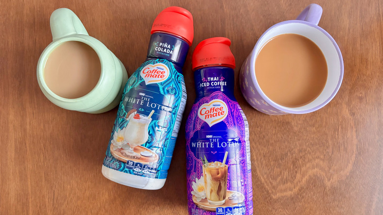 With Season 3 of "The White Lotus" set to drop on February 16, 2025 on HBO, it only makes sense to start thinking about what you might be sipping as you enjoy the new episodes. Enter Coffee Mate's new The White Lotus themed creamers, a flavor duo inspired by the popular series. Ahead of Season 3, which will take place in Thailand, the creamer brand has debuted a Thai iced coffee flavor, along with a piña colada flavor which is more of a nod to Season 1, which took place in Hawaii.