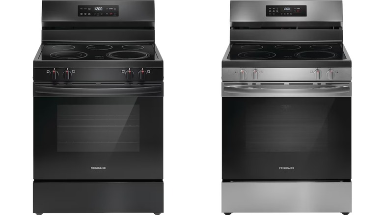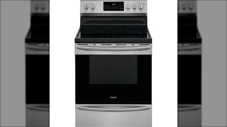 Frigidaire has a few different 30-inch electric ranges, so let's talk about two highly rated options. For starters, there's the Steam Cleaning Electric Range (left): As the name implies, this one comes with a 30-minute steam clean function that customers say is capable of getting rid of even the most stubborn of drips and spills. They're also thrilled with a glass top that's just as easy to clean, which they say is great at even heat distribution. Add in points for a design that puts the controls in the front — getting rid of the dangers of leaning over hot burners and pans to adjust temperatures — and it's a fan favorite.