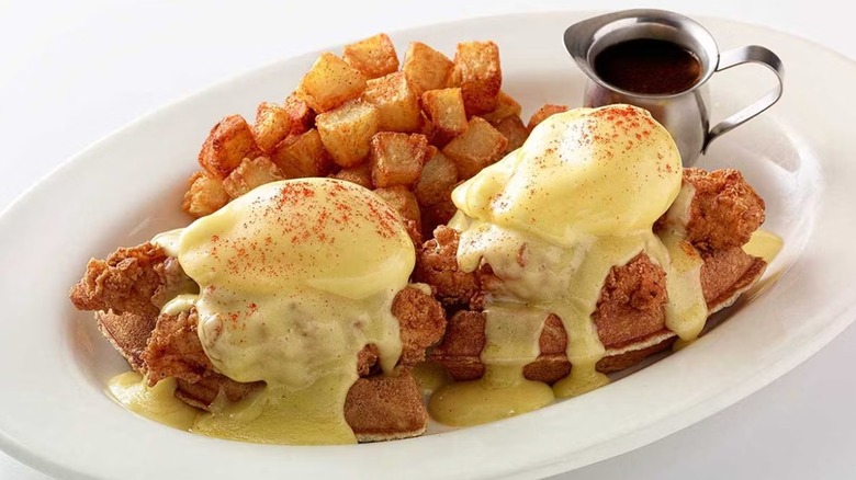 The Fried Chicken & Waffles Benedict only costs $18.95, which we think is a steal. For context, if you just ordered the regular Fried Chicken & Waffles meal, that would cost you $17.95. The Eggs Benedict meal is also $17.95, although this one does come with an English muffin and bacon. However, to get a mixture of the two meals and ultimately upgrade the chicken & waffles dish for only $1 more, this is definitely a great deal. In total, the meal is 1,670 calories, which is close to all of the food you'd need in a day on a 2,000-calorie diet. You could definitely box up half of this meal and save it, making the savings even better.
