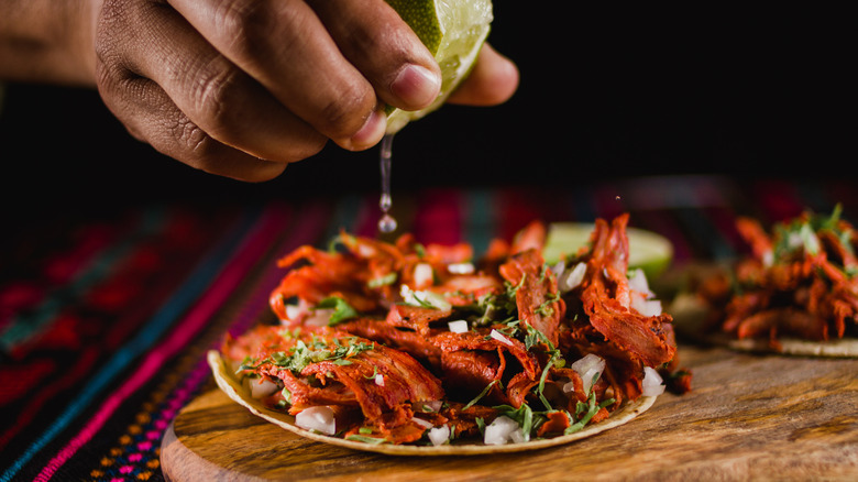 Once you've cooked your homemade pork al pastor to perfection, it's time to serve it. If you're making tacos, you might want to take a page out of a culinary celebrity's book. For example, Andrew Zimmern likes to keep taco toppings simple. He loves taco al pastor served simply with cilantro, lime, and onions. He would skip the sour cream and guacamole.