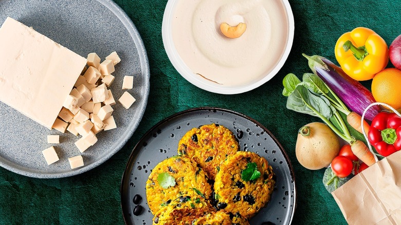 Luckily, vegetables vary in texture and are easily altered depending on the cooking method. Potatoes are a fantastic example — do you enjoy them silky mashed or crispy fried? It's not hard to get the crispiest potatoes. The two couldn't be more different, and both are fan favorites. Add potato chips to your veggie sandwich or black bean burger for a satisfying crunch. Cake your eggplant in panko breadcrumbs and toast it up in hot oil. Add toasted seeds to the top of your stuffed squash, and sprinkle pomegranate seeds on your salad or soup. Press all of the liquid out of your tofu and cook it for a long time to get an ultra-chewy texture, or try soy curls.