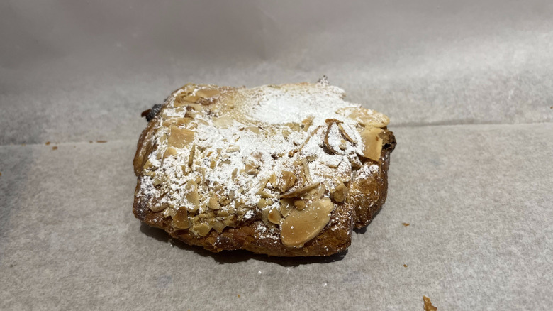 I love to get proven wrong, and that's exactly what this chocolate almond croissant did. Somehow, it manages to be dense and flaky all at once — a combination that shouldn't work but absolutely does. The pastry's texture is crumbly on the outside, with just a hint of burnt sugar flavor that adds complexity to every bite.