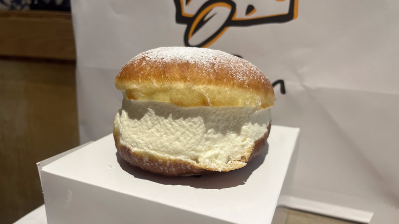 The cream in this French cream donut is quite literally the crème de la crème. It's rich, velvety, and sweet — but not cloying. The texture of the cream is beautifully stiff; it holds its shape and offers a luxurious mouthfeel that enrobes the tongue with every bite.