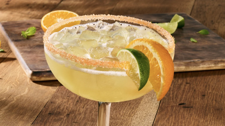 An Italian margarita reimagines a classic marg recipe by swapping out Cointreau for an Italian liqueur. While Olive Garden opts for presenting amaretto to restaurant guests, along with the margarita's other ingredients, tequila and triple sec, Aperol or limoncello can also be incorporated into these kinds of recipes. Instead of needing to reach for simple syrups and extra sugars to balance out the citrusy notes of a standard marg, the inclusion of amaretto offers just enough sweetness to add depth to a drink without turning it into a cloying cocktail that feels like a chore to put back.