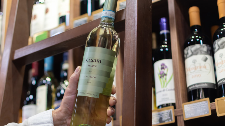 Soave is a white wine named for its where it's made — Soave is a town near Verona, Italy; the wine is produced there and the surrounding Veneto region. To be considered Soave, the wine must be at least 70% garganega grapes, plus other approved varietals like chardonnay. Italy gave this type of wine a Denominazione di Origine Controllata, or DOC, distinguishing it into three types, Soave, Soave Classico, and Soave Colli Scaligeri, depending on where the grapes are grown. Soave, the best known and most produced, is the one you're likely to encounter. It's floral and fruity, possessing a sweetness and acidity that's countered by the touch of light bitterness Amy Racine mentions. It also has a balance of mouth-coating richness and a crisp, dry finish, which makes it the ideal partner to carbonara — Soave matches the dish's creamy, fatty profile while cutting through it with acidity and dryness. You may also find aged versions of Soave, which will be extra complex with notes of spices, herbs, and minerality.