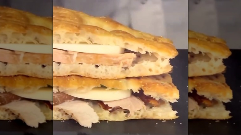 Served on pizza bianca, which Flay describes as a "white pizza bread," and pressed to order, porchetta sandwiches can be layered with stracciatella and pesto in what Flay crowns the perfect Italian sandwich. He's not alone in the description. Other visitors have described the sandwiches coming out of La Vita è un Mozzico as the best in Rome and a life-changing meal. Lines start forming at 10 in the morning, however, and should you visit in person, you won't find a menu. Ingredients are weighed separately and sandwiches are custom-made according to your choice of meats, cheeses like mozzarella and pecorino, sauces and condiments, and vegetables like sun-dried tomatoes.