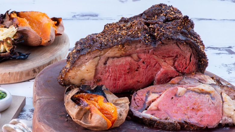 The technique for a so-called "wet cure" is the same as brining a turkey. As Brown noted, a brine exchanges seasoned liquid with the water in the animal's protein cells and thus keeps the meat juicy. Despite popular belief, adding flavoring to a brine, like seasonings, herbs, and spices, actually does very little if anything to flavor the meat, and in effect, you're simply over-saturating the poultry, which affects its taste and texture. Certainly, brining a turkey has a lot of fans, but what's good for the bird isn't great for the beef, especially a pricey holiday rib roast or prime rib when you want a crispy browned sear that can only come from properly curing the beef.