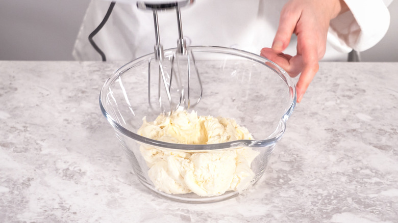 I have distinct memories of making buttercream, putting it on a cupcake, and watching it harden so much that it was unwilling to spread. Now that I think about it, the likely culprit here was an icing that was not properly whipped and did not have enough volume to spread easily. You shouldn't be afraid to whip your frosting well with your stand mixer — just be careful not to whip it so much that it turns into butter. You should also sift your powdered sugar before adding it into the frosting to ensure that it doesn't clump together. It's easier to correct the frosting while it's still in the mixing bowl than when it's on your cupcake.