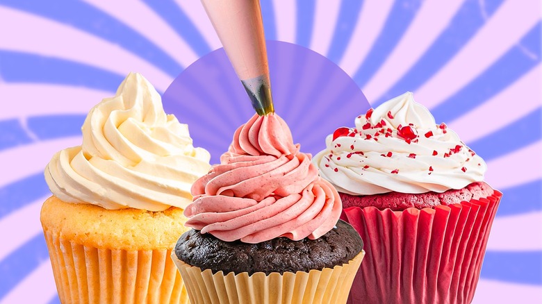 Cupcakes are an easy-to-make, pint-sized version of the your favorite type of cake. They're far easier to distribute to a crowd than a big, layered monstrosity, and they're easy to eat while you're milling about at a special celebration, too. While the process of baking and making cupcakes is quite fun and enjoyable for many, it's the frosting and piping step that makes people ask themselves why they didn't just pick up a 12-pack from their grocery store's bakery.