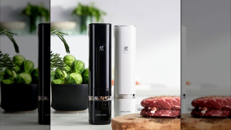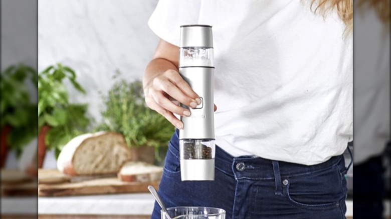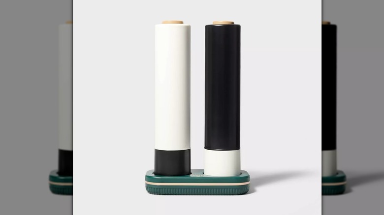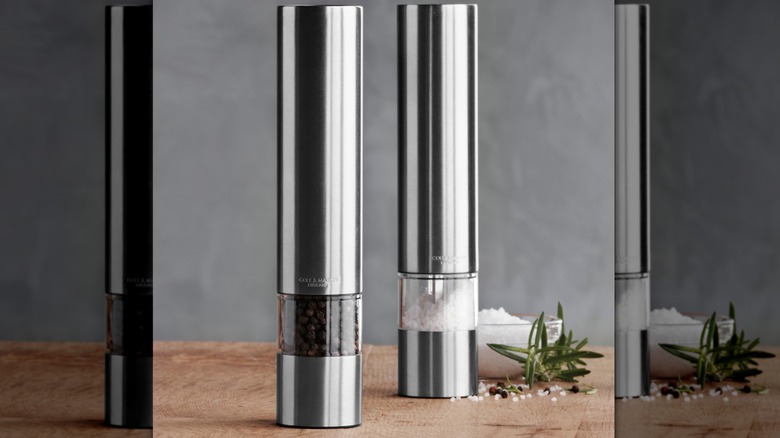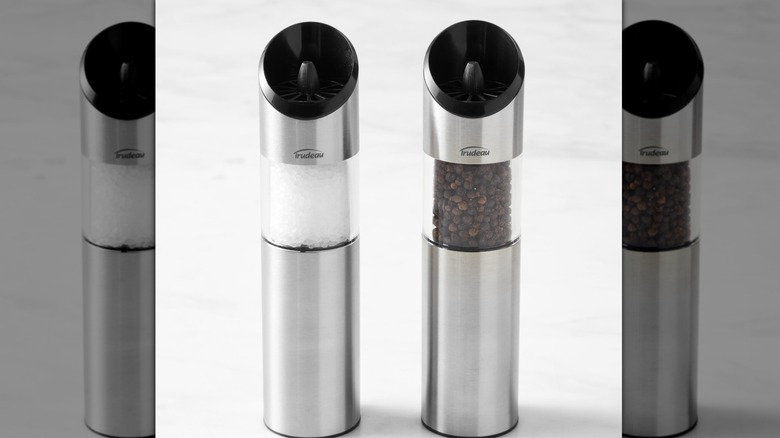 Salt and pepper are the two most quintessential spices — the bread and butter of the spice world, you might say. Nearly every recipe includes at least a little bit of salt — and if you want a nice savory meal, you can bet there's going to be some black pepper in there, too. But if you're busy with a fast-paced recipe, you might not have as much time as you hoped to grind out salt and pepper by hand. Maybe you just can't get the spices on your fried egg before it cooks or have trouble grinding while you're stirring your risotto at the same time.