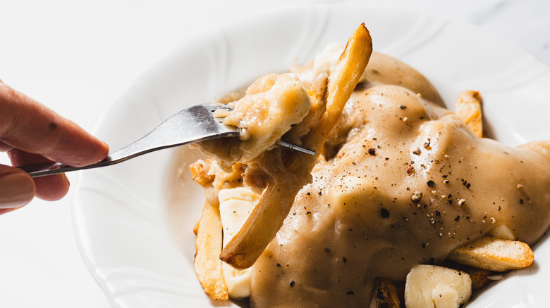 According to Ksenia Prints of At the Immigrant's Table, authentic poutine stands out for its interplay of textures and temperatures. From the crunchy fries to the soft, melty curds and the warm gravy, everything comes together to create a truly crave-worthy combination. Though now found across Canada and beyond, poutine remains an iconic part of Quebecois cuisine and culture. This recipe walks you through how to recreate this Canadian favorite in your own kitchen.