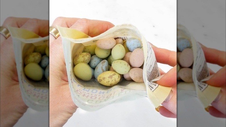 Like its peanut butter cup counterparts, the chocolate-covered almonds are available in both dark chocolate and milk chocolate versions. In fact, you'll find a lot of variations on chocolate-covered almonds over at Trader Joe's, and all of them are worthy of their own taste test if you're a sweet and salty fan. Many varieties of the brand's chocolate almonds feature their own ratios of salt to chocolate, so if you're a fan of super-sweet treats, you might want to look out for the colorful blue, green, yellow, and pink ones coated in candy. Prefer an extra-salty snack? The turbinado sugar and sea salt almonds are for you.