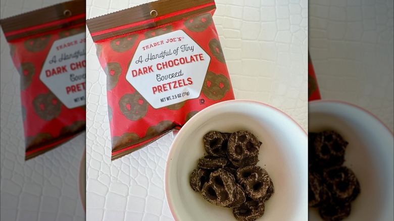 Ah, mini pretzels — another hallmark of sweet and salty treats. Trader Joe's produces many, many delicious varieties of miniature pretzels throughout the year — like its seasonal mocha latte- or ube-flavored mini pretzels that captured the hearts (and the shopping baskets) of Trader Joe's customers. But the milk chocolate mini pretzels are a classic that you'll find at Trader Joe's all year long — so you can safely rely on them as a dessert snack staple.