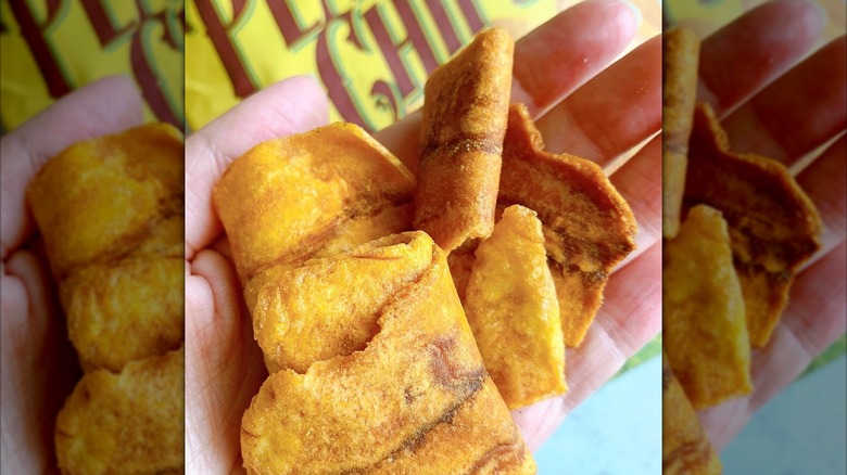 Bambas are essentially peanut-flavored corn puffs — they're big, airy, and have a peanut-buttery taste. This puffy, fluffy snack normally doesn't come filled — but then again, Trader Joe's loves to think outside the box when it comes to designing snacks. This is a variation on Trader Joe's ordinary Bambas that comes with a delicious hazelnut filling, doubling the nutty flavors of the snack.