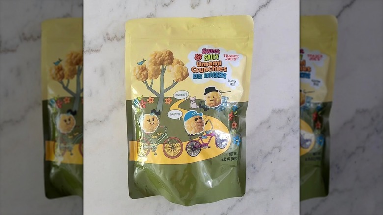 Now, some fans of the sweet and salty umami crunchies argue the snack is a little bit greasier than they were expecting. According to some taste-testers, the oil leaves too strong of a taste — which isn't helped by the crackers' super small size. If you're not a fan of rice oil (one of the primary ingredients of the little crisps), you might want to steer clear of this one. But many people aren't bothered by the oil at all, so this flavorful snack is still worth a shot thanks to its genius flavor pairings. As with many favorite Trader Joe's snacks, however, you'll just have to wait for it to come back in season again. We've often spotted this popular snack on shelves around springtime.