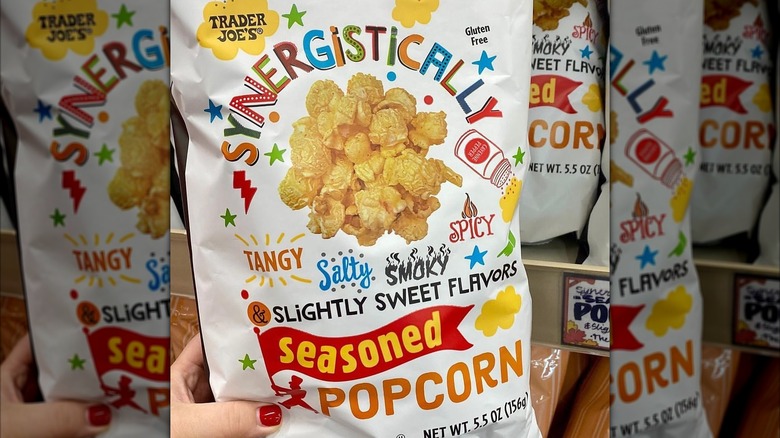 Like many Trader Joe's products, you won't find synergistically seasoned popcorn in the aisles year-round. The grocery store chain regularly takes the bags on and off its shelves, making it a seasonal product that is more likely to appear for a short time around spring.