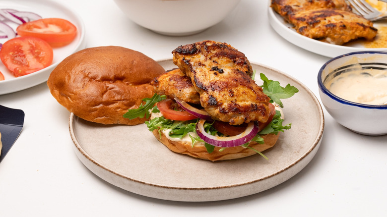 If you are looking for simple, high-quality food that packs a real punch in the flavor department, look no further than Nando's. This multinational restaurant chain is known for its consistently well-cooked, succulent, and well-spiced chicken, as well as its fun side dishes, its affordability, and casual dining style. While it is always great to head out and enjoy a Nando's, you can also recreate one of the chain's most iconic dishes — a peri-peri chicken sandwich — right in your own home.